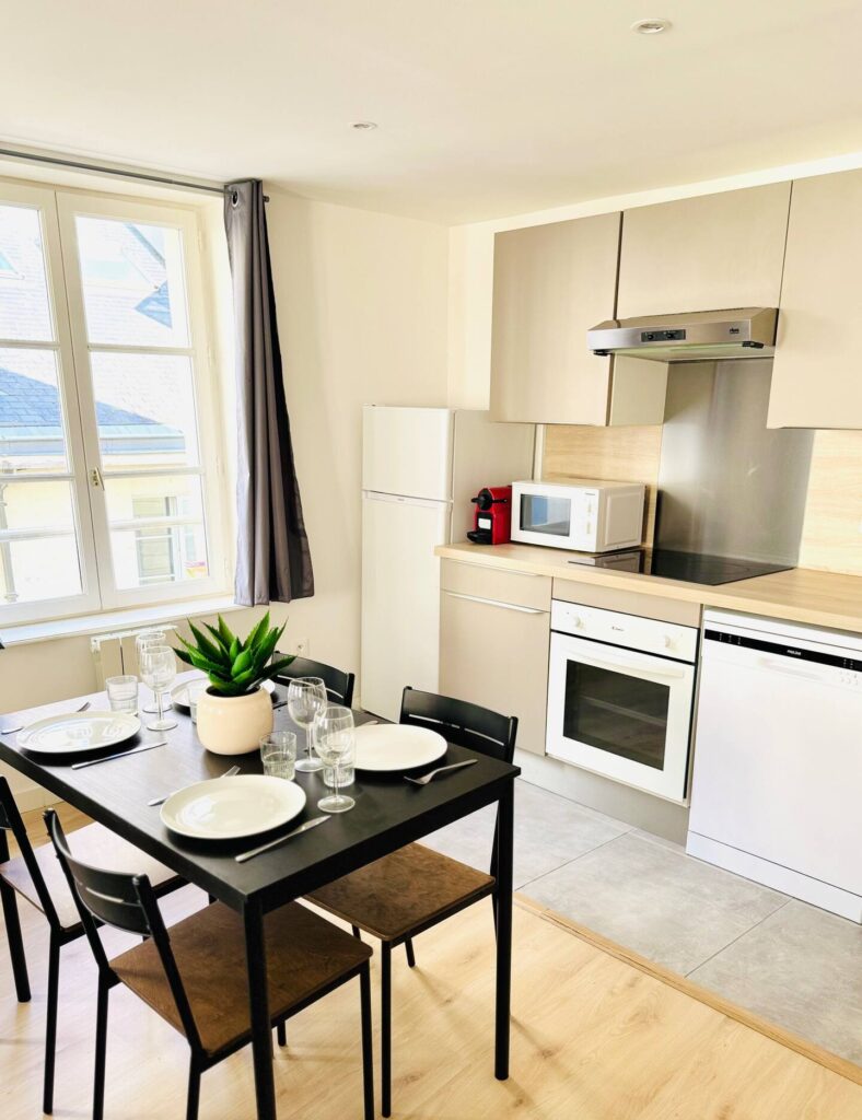 L’appartement est conçu pour offrir un véritable confort de vie, comme à la maison. Tout est prévu pour vous permettre de vous installer en toute sérénité dès votre arrivée : café, thé, filtres, lessive, produits de toilette… Tout est prêt.